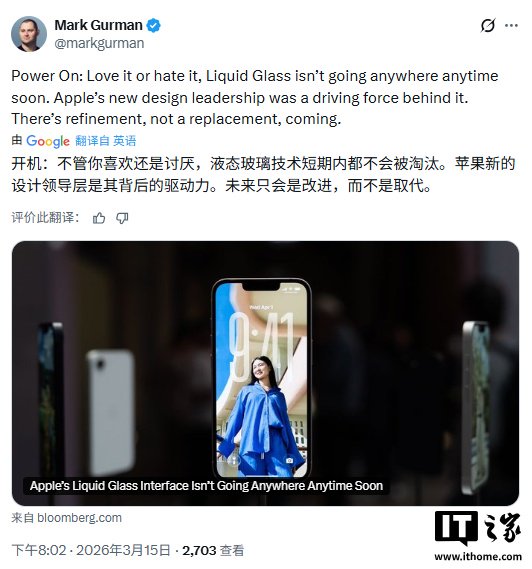 古尔曼:液态玻璃设计短期内不会欧交易所app被苹果淘汰,在 iOS 27、macOS 27 中无重大调整