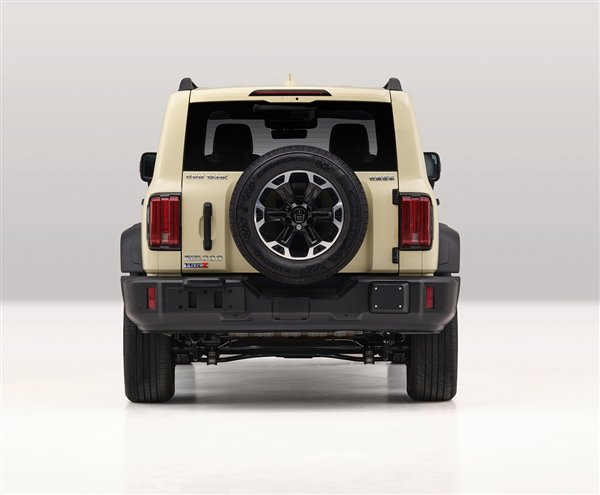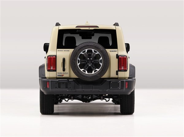 车辆尾部依旧是粗犷的风格,配备裸漏在外的备胎、竖条状尾灯以及侧开式尾门,同时根据车型的不同,提供Hi4-T和Hi4-Z两种尾标。